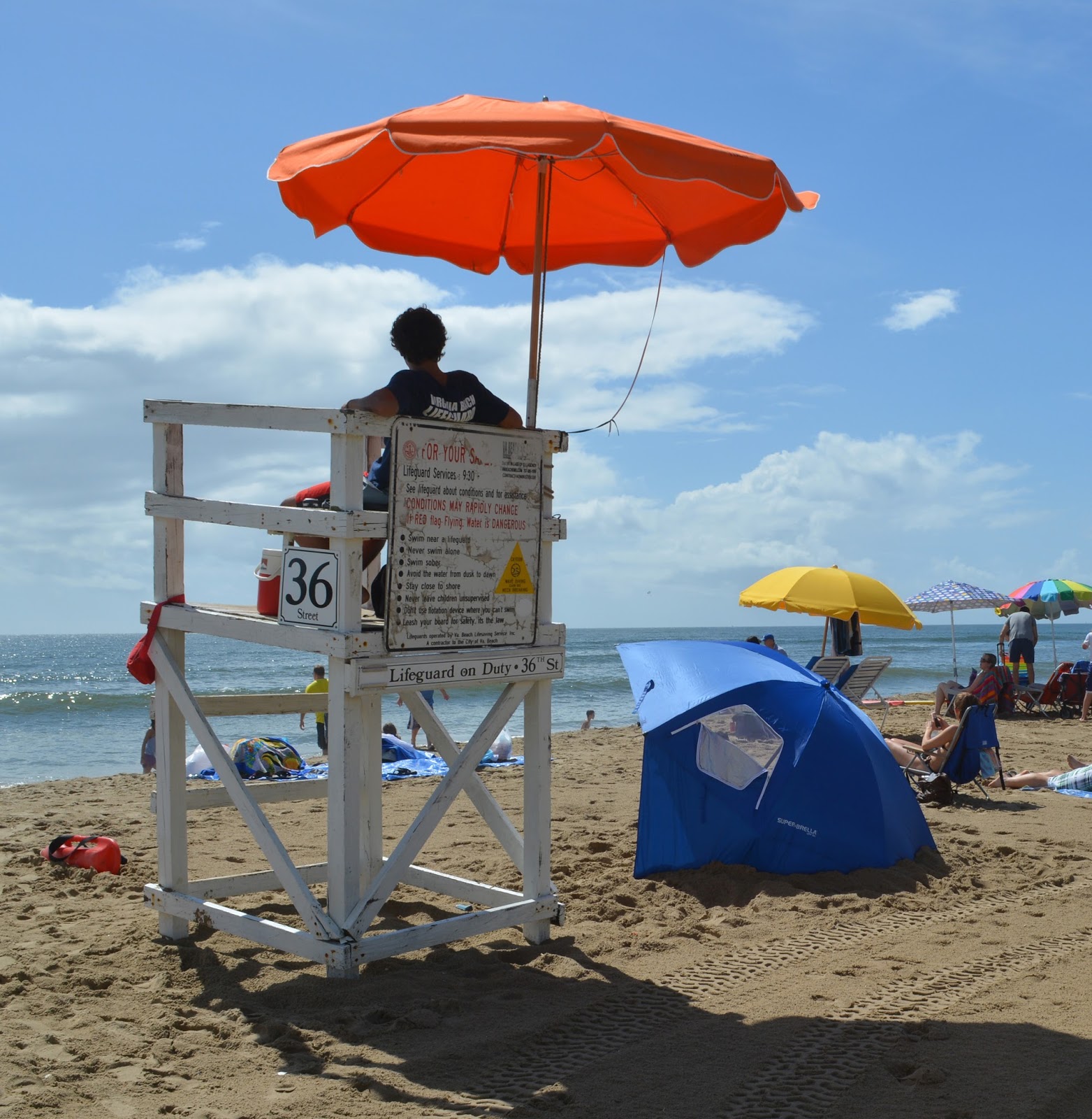 Cutting deeper in, my lifeguard reference taped to my canvas, I added a suggestion of an ocean